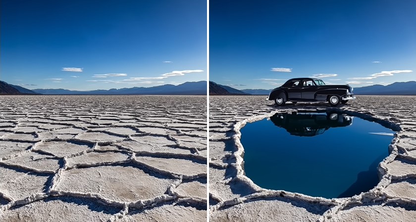 Původní foto (vlevo) vs generativně rozšířená fotka (vpravo)